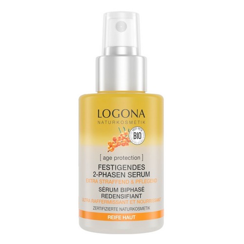 Das LOGONA Festigende 2-Phasen Feuchtigkeitsserum verwöhnt die Haut sofort mit wertvoller Feuchtigkeit und intensiver Pflege. Die hochwertige, vegane Rezeptur mit regionalem Bio-Sanddorn und natürlichem Hyaluron strafft die Haut und stärkt die Hautschutzbarriere. Die Kombination aus Öl- und Wasser-Phase polstert die Haut auf und pflegt intensiv für ein sofort angenehm geschmeidiges Hautgefühl.