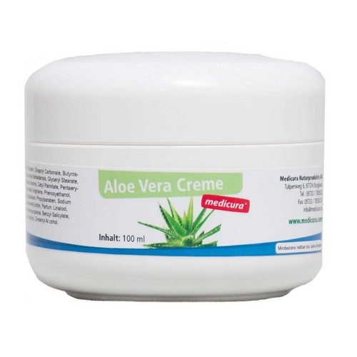 Die Aloe Vera Creme kombiniert die wohltuenden Eigenschaften der Aloe Vera mit Komponenten wie Sheabutter, Harnstoff und Hamamelis-Extrakt, um die Haut intensiv zu pflegen und mit Feuchtigkeit zu versorgen.