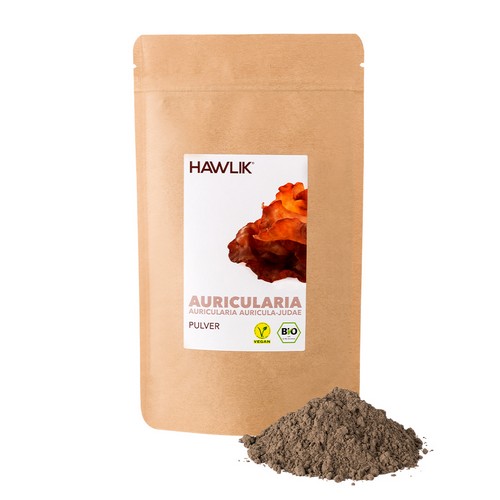 Für das HAWLIK Bio Auricularia Pulver wird nur das Wertvollste, der voll ausgereifte Fruchtkörper zu extrem feinen Pulver verarbeitet.