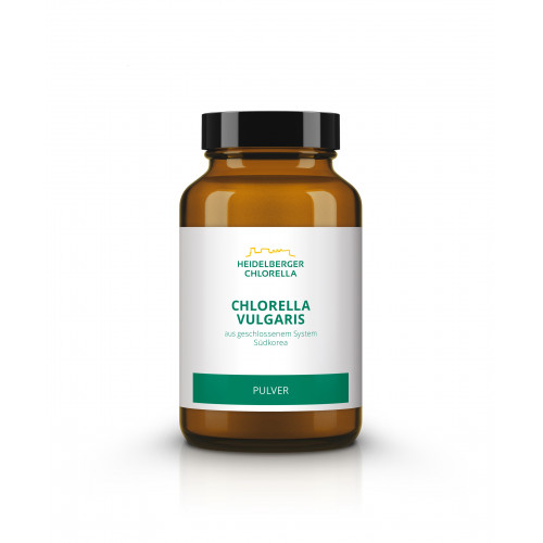 Die Chlorella vulgaris ist mit 2 Gramm pro 100 Gramm besonders reich an Chlorophyll, was leicht an ihrer satten grünen Farbe erkennbar ist.