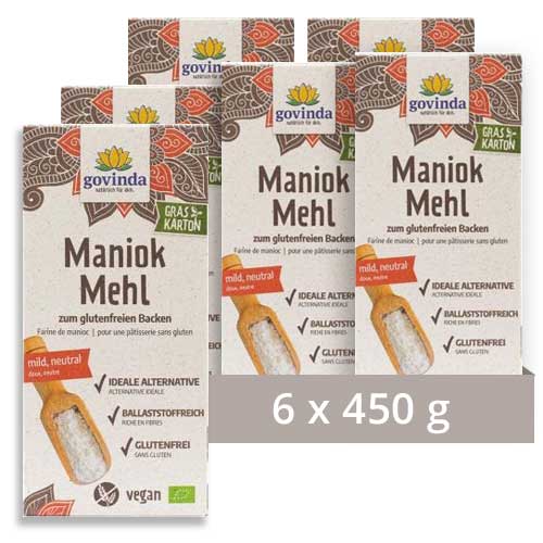 Maniokmehl ist die beste Alternative zu herkömmlichem Weizenmehl. Da es aus der Maniok-Wurzel gewonnen wird und nicht aus Getreide, ist es von Natur aus glutenfrei – es lässt sich aber fast ganz genau so wie Weizenmehl verwenden! Zudem ist es ballaststoffreich und verfügt über einen hohen Stärkegehalt. Es ist mild im Geschmack und hat eine feine Textur. Somit ahmt es die Konsistenz und Eigenschaft von herkömmlichem Mehl sehr gut nach. Anders als andere glutenfreie Mehl-Alternativen kann Maniokmehl oft 1:1 herkömmliches glutenhaltiges Mehl wie Weizenmehl ersetzen. Schon jetzt wird es als neuer Star der glutenfreien Backregale gefeiert!
