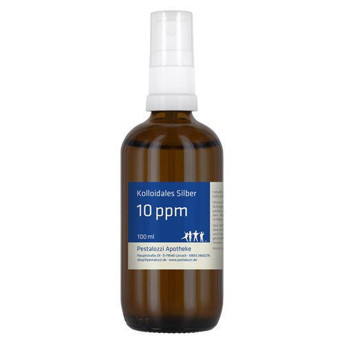 Das kolloidale Silber 10 ppm wird mit hochreinem destillierten Wasser unter qualifizierten Laborbedingungen frisch hergestellt und in einer dunklen Glasflasche geliefert. Die Herstellung erfolgt in der Apotheke unter überwachten Laborbedingungen. Das kolloidale Silber wird auf elektrolytischem Wege mit Hilfe eines entsprechenden Generators hergestellt. Dabei werden aus 99,99% reinem Silber kleinste Partikel gebildet und in destilliertem Wasser verteilt. Wir arbeiten dabei ohne Einsatz von Zusatzstoffen. Bitte beachten Sie: Kolloidales Silber ist kein Arzneimittel und daher auch ohne Angabe einer Indikation. Aus rechtlichen Gründen bieten wir daher das kolloidale Silber nur für technische Zwecke an. Nicht zum Einnehmen.