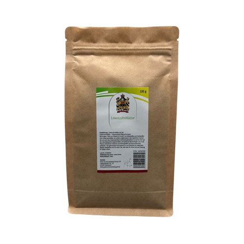 Inhalt: 100g getrocknete Löwenzahnblätter in der Kraftpapier Tüte