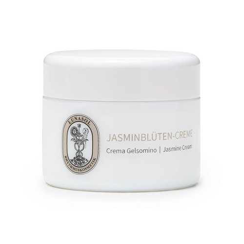 In warmen Sommernächten entfaltet der Nachtjasmin seine schneeweißen Blüten und verströmt seinen betörenden Duft. Um sein kostbares ätherisches Öl komponierten wir die Jasminblüten-Creme. Die leichte Nachtcreme gibt der Haut den Impuls zur nächtlichen Regeneration und stärkt ihren Hydro-Lipid-Schutz. Die Haut entspannt sich, wird samtig-weich und fühlt sich gut an. Ihre spagyrischen Inhaltsstoffe verwandeln Schlaf in Schönheitsschlaf: die Mondpflanzen-Silber-Essenz „Formel-Mond“, Auszüge von Pfingstrosenblüten und Schafgarbenkraut in Mandelöl und Bienenwachs.