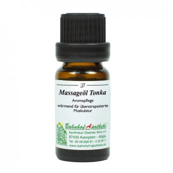 Die Aromamassageöle enthalten einen höheren Anteil an ätherischen Ölen als die Körperöle und sollten nur für Körperpartien oder gelegentlich zur Ganzkörperbehandlung angewendet werden. Reiben Sie das Massageöl Tonka in die betroffenen Partien ein und wiederholen Sie es nach Bedarf.