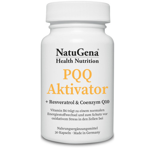 PQQ – auch Methoxatin genannt – wurde erstmals 2003 entdeckt und ist seitdem im Fokus von Wissenschaftlern sowie Ernährungs- und Vitalstoffexperten. Das NatuGena-Produkt PQQ-Aktivator enthält PQQ in garantiert hoher Qualität, als Markenrohstoff. Das Produkt wird sinnvoll kombiniert mit einem hohen Anteil an Q10, Resveratrol, Vitamin E und dem bioaktiven Vitamin B6, schützt es die Zellen vor oxidativem Stress.