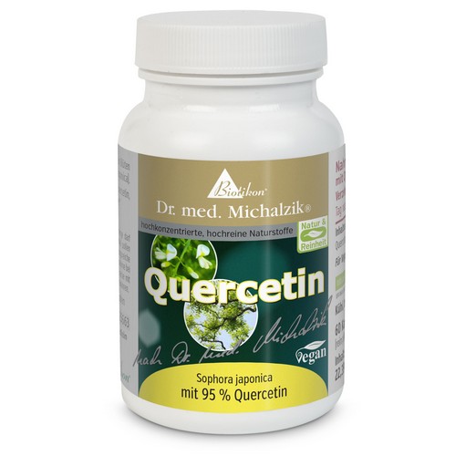Quercetin nach Dr. med. Michalzik aus den Blüten des Japanischen Schnurbaums (bot. Sophora japonica) mit 95 % reinem Quercetin. Quercetin gehört zu den sogenannten sekundären Pflanzenstoffen.