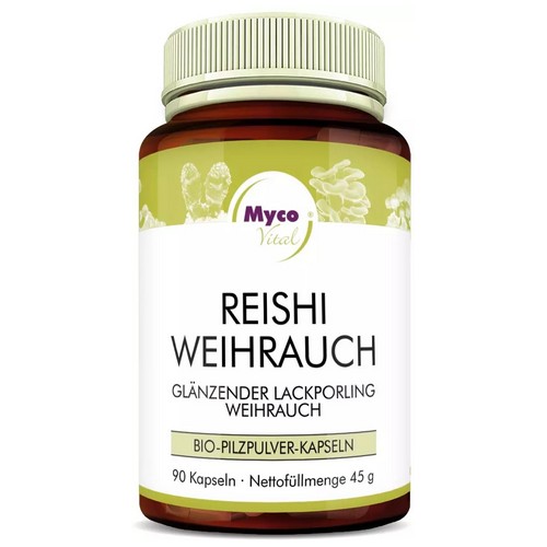 Glänzender Lackporling (Ganoderma lucidum) Pulver*, Weihrauch (Boswellia carterii) Pulver, Hydroxypropylmethylcellulose (HPMC) Kapseln