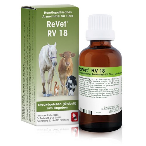 • ReVet®RV -Serie für alle Tierarten, auch für lebensmittelliefernde Tiere. Packungsgröße: 42 g Globuli.