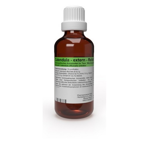 • Unverdünnte Anwendung: Sofern nicht anders verordnet, wird Calendula – extern - ReVet® RV 27 auf der Körperoberfläche und der Haut des äußeren Gehörgangs unverdünnt angewendet. In unverdünnter Form hat Calendula – extern - ReVet® RV 27 aufgrund seiner Zusammensetzung geruchsbindende und keimhemmende Wirkung; dennoch sollten Verbände mit Calendula – extern - ReVet® RV 27 pro Tag 1-2mal gewechselt werden. Auf Schleimhäuten sollte Calendula – extern - ReVet® RV 27 verdünnt angewendet werden