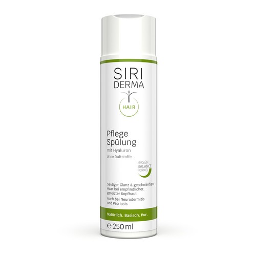 Auch die Kopfhaut benötigt eine gut verträgliche Pflege: Siriderma Pflege-Spülung aus der basischen Körperpflegeserie Siriderma care. Die Spülung ist sanft zur Kopfhaut und verleiht den Haaren einen seidigen Glanz. Siriderma Pflege-Spülung ist für alle Hauttypen geeignet und kann selbst bei empfindlicher und strapazierter Kopfhaut angewendet werden.